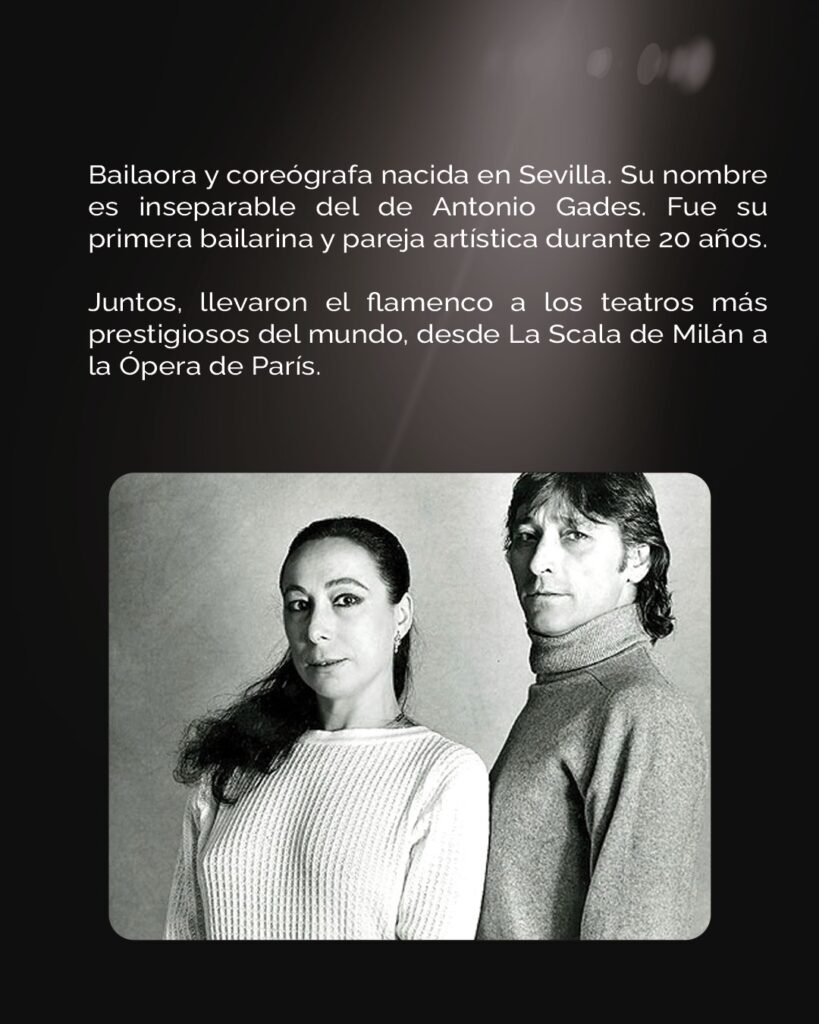 Cristina Hoyos‘s name resonates in the world’s greatest theaters, but her legend was forged step by step, with artistry and rhythm. Her presence in Lorca is a historic event, and we want to celebrate it by reviewing a career that has defined contemporary flamenco.